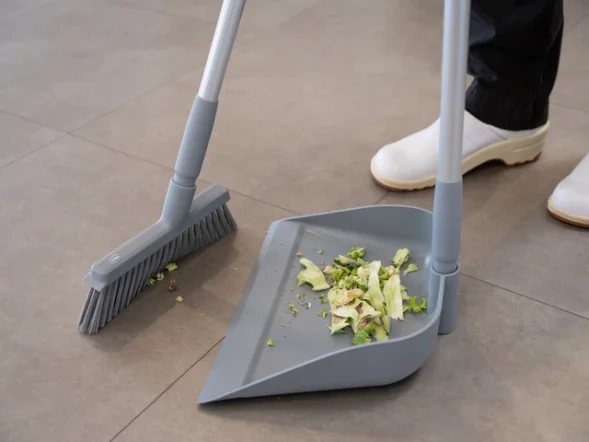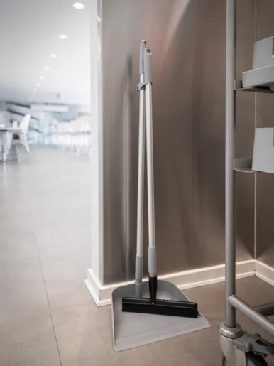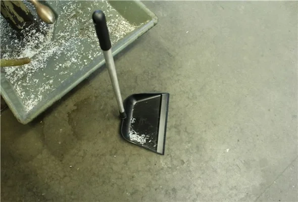 Внешняя передняя поверхность имеет приподнятую область, чтобы предотвратить выпадение мусора из совка.