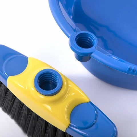 2. Рукоятки для совка и щетки снабжены еврорезьбой, что обеспечивает прочное соединение (у конкурентов как правило без резьбы, просто вставные. Со временем черенки выскакивают).