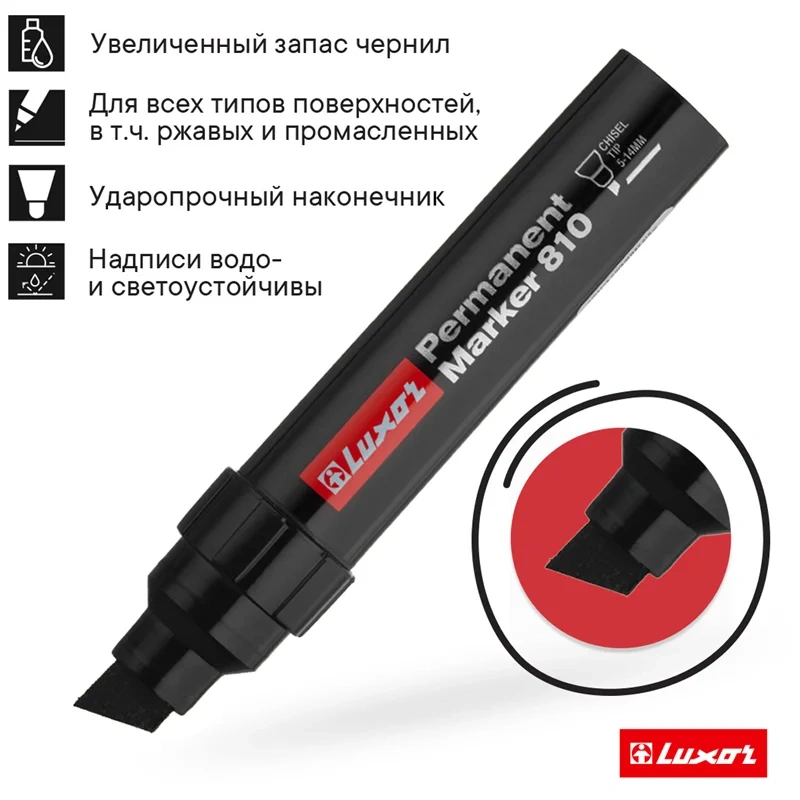 Маркер промышленный перманентный Luxor 810 черный, 14мм, скошенный наконечник