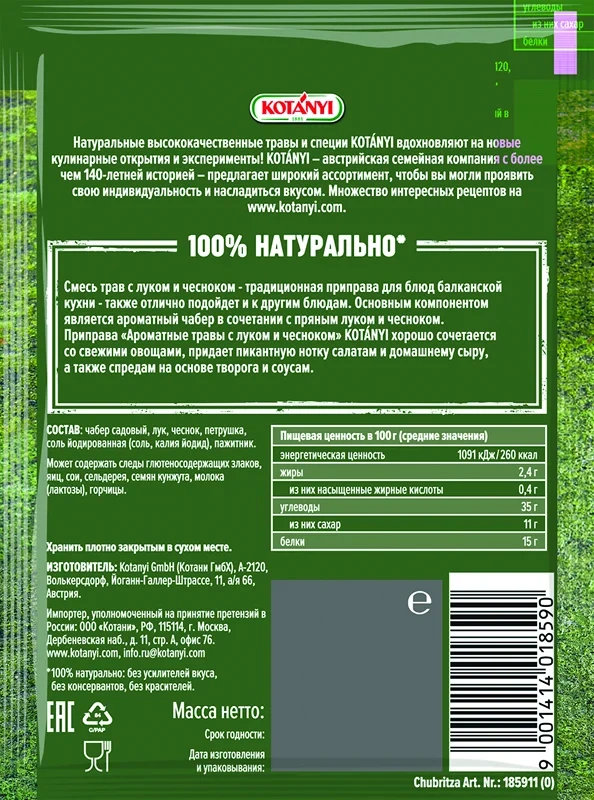 Приправа Kotanyi Ароматные травы с луком и чесноком, 20г