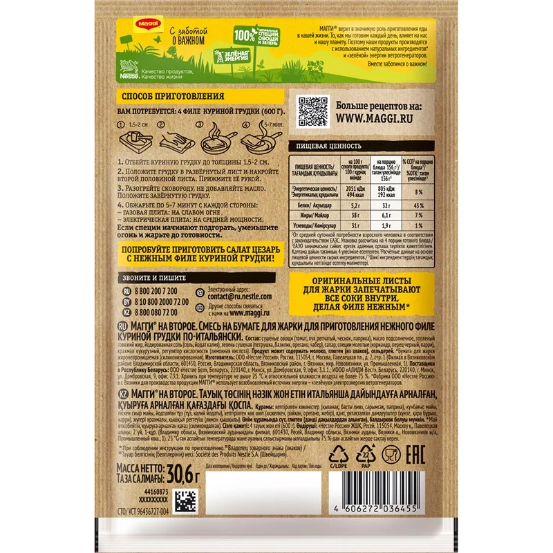 Смесь Maggi На второе на бумаге для жарки для приготовления нежного филе куриной грудки по-итальянск