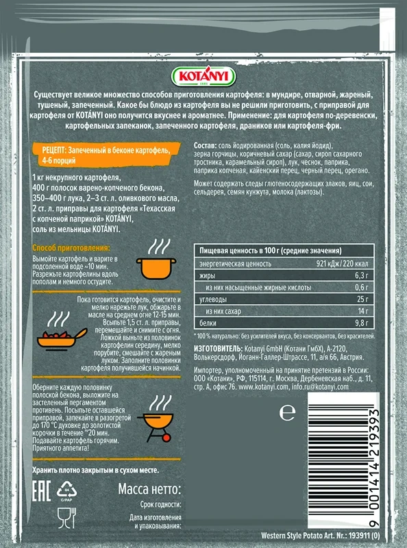 Приправа Kotanyi Для картофеля техасская с копченой паприкой, 20г
