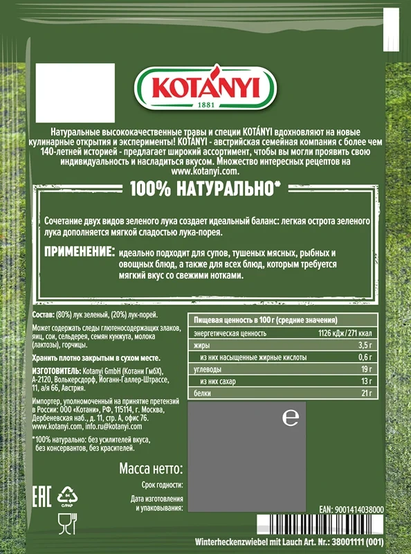 Эстрагон (тархун) Kotanyi измельченный, 7г