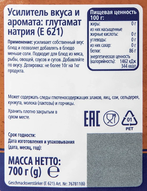 Приправа Metro Chef Глутамат натрия Е621, 700г