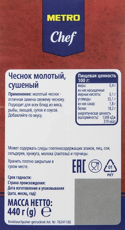 Приправа Metro Chef Чеснок гранулированный, 670г