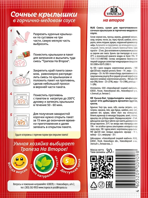 Смесь сухая Трапеза для крылышек в горчично-медовом соусе, 30г