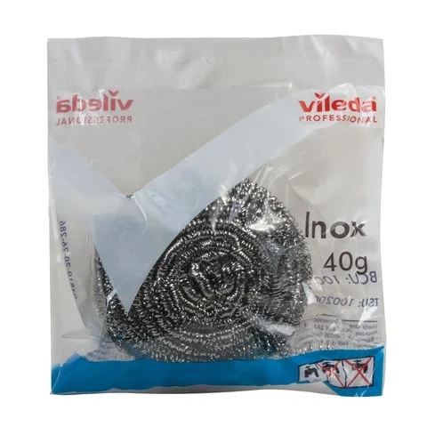 Инокс – очень стойкая и прочная чистящая спираль с высокой эффективностью очистки. 100% нержавеющая сталь делает ее идеальным средством для интенсивного оттирания и удаления въевшейся грязи. Промывается под проточной водой и при необходимости дезинфицируется. Представлена в двух размерах: 40 и 60 г. Применение Зона приготовления пищи, кухни на предприятиях общественного питания, а также пищевые производства.