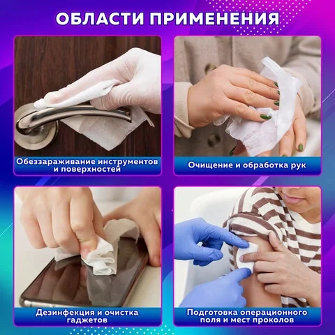 Антисептическая салфетка не оставляет на поверхности кожи волокнистых компонентов и не вызывает аллергических или местно-раздражающих реакций.