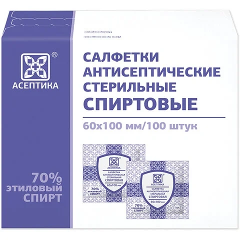 Салфетка антисептическая Асептика 6х10см, 100шт, коробка