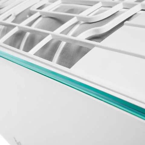 Возможность регулировки широких горизонтальных и вертикальных жалюзи с помощью русифицированного пульта ДУ позволяет создавать комфортный угол обдува, предотвращающий продувание.