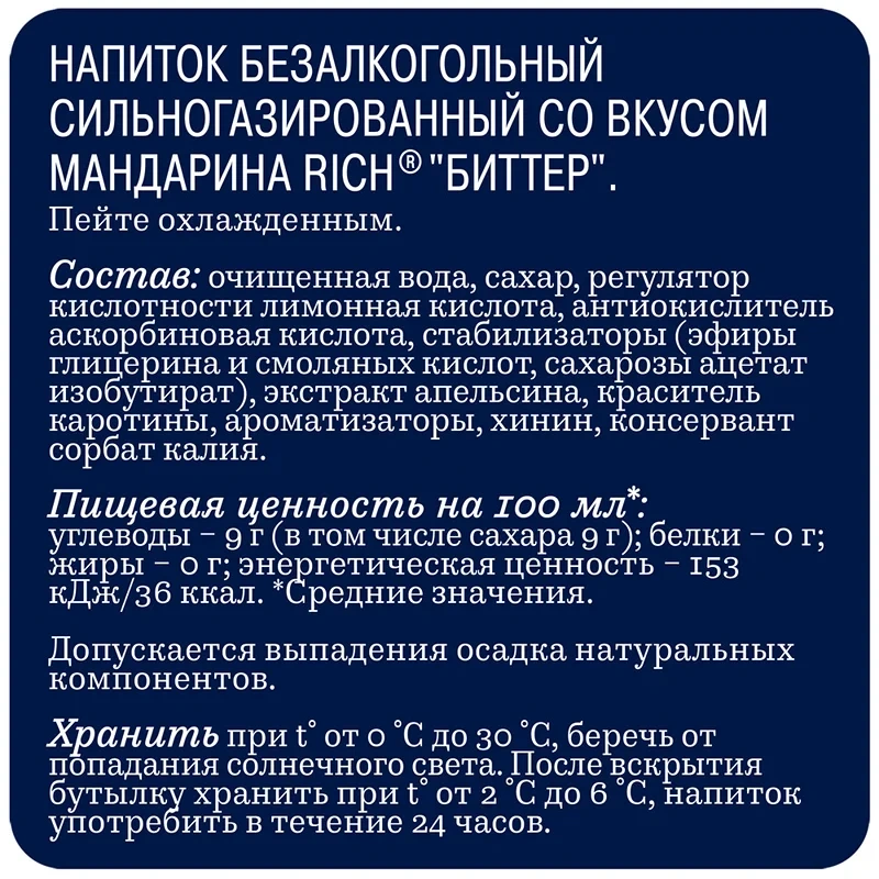 Напиток Rich газированный мандарин, 330мл представляет собой освежающий напиток, который помогает ут...
