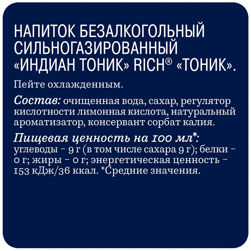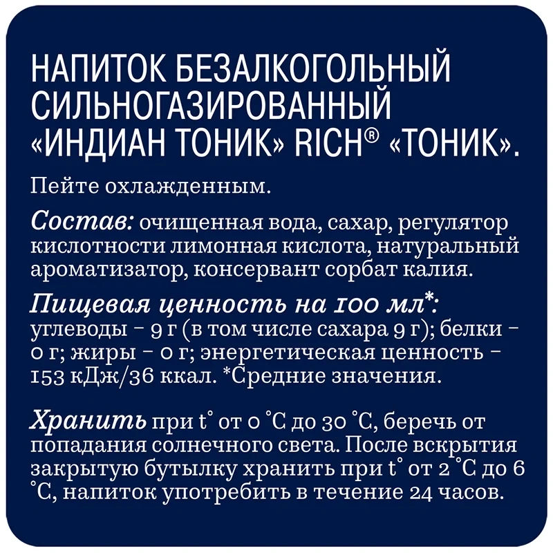 Напиток Rich газированный индиан тоник, 1 лпомогает не только освежиться или утолить жажду в знойные...