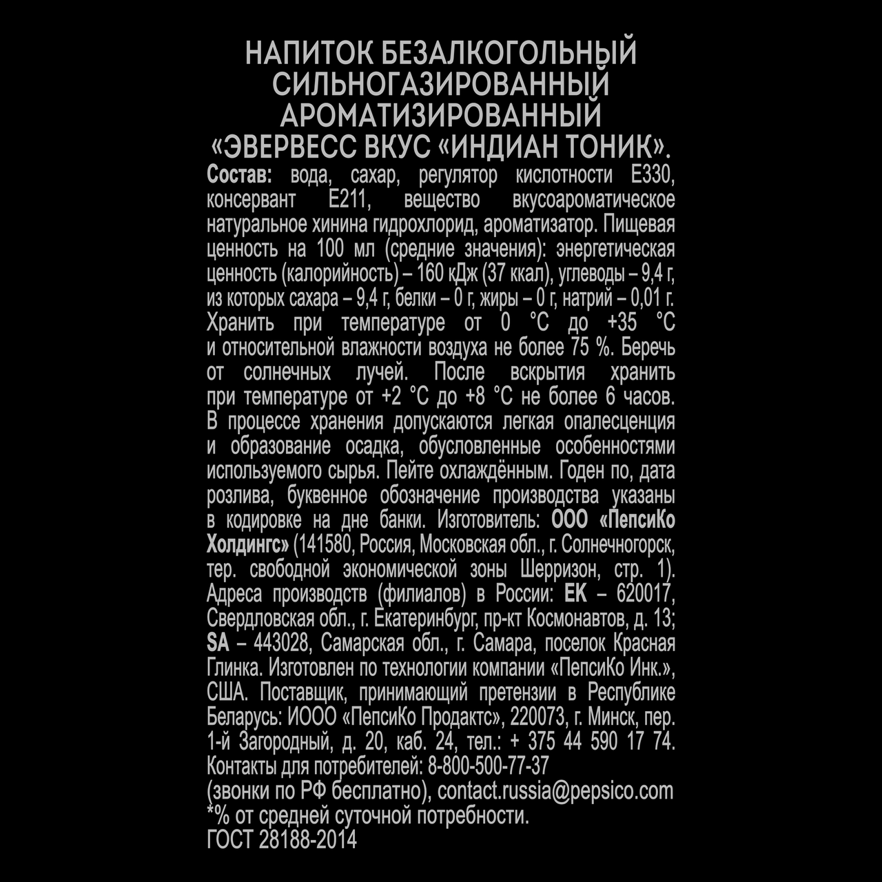 Тоник Evervess Индиан тоник, 330мл, ж/б