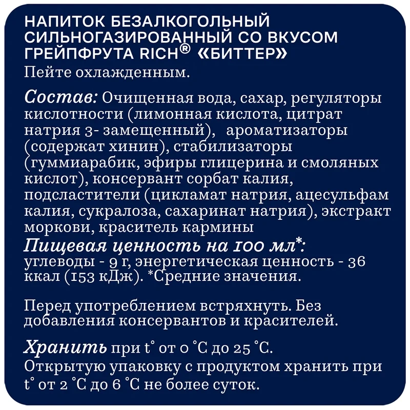 Напиток Rich Bitter газированный лемон, 330 мл – освежающий и бодрящий продукт, который выручит вас ...