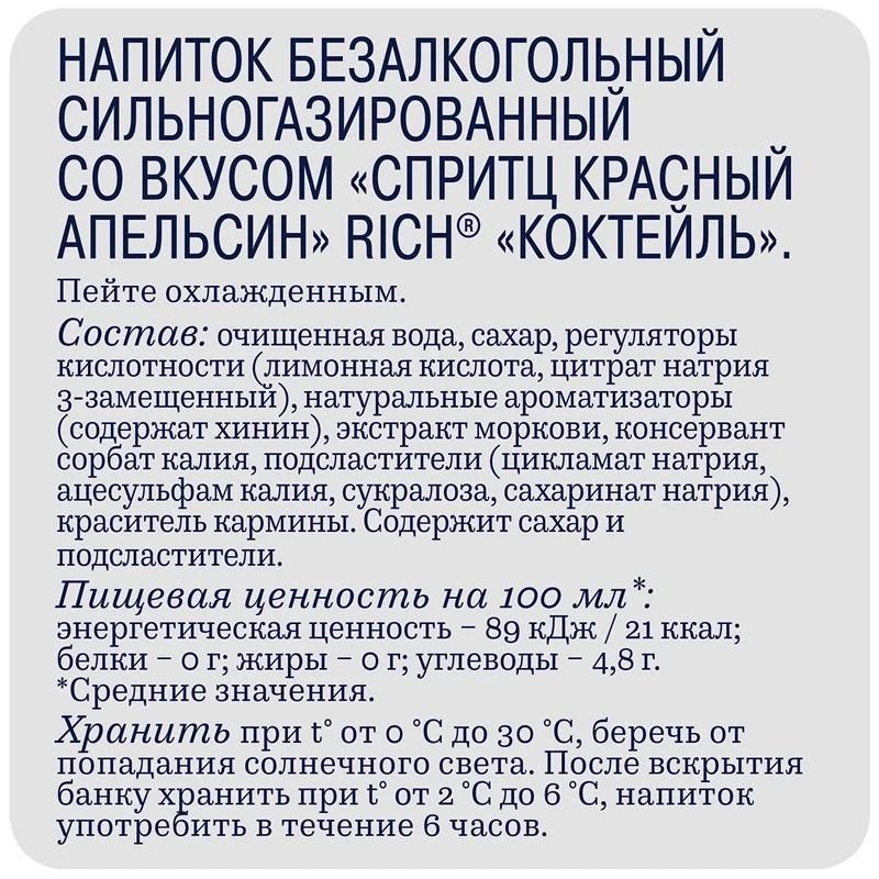 Напиток Rich Спритц красный апельсин газированный, 330мл x 12 шт - это сильногазированные напитки вы...