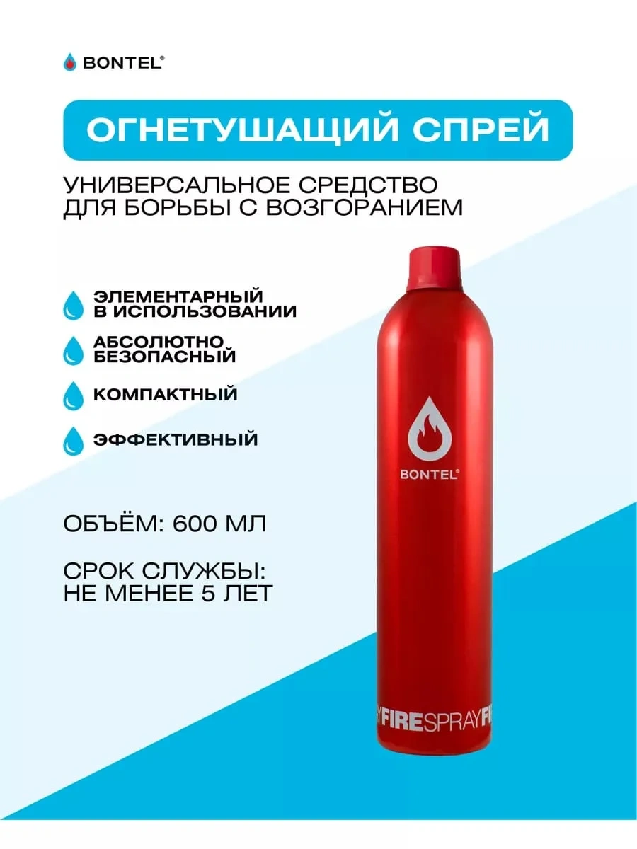 Спрей огнетушащий Cleancar Bontel ОС-600, 600мл – является высокоэффективным средством для борьбы с возгоранием в быту и на транспорте. Компактность и простота использования позволяют применять его даже детям, женщинам и пожилым людям. Незаменимое мобильное средство пожарной безопасности.