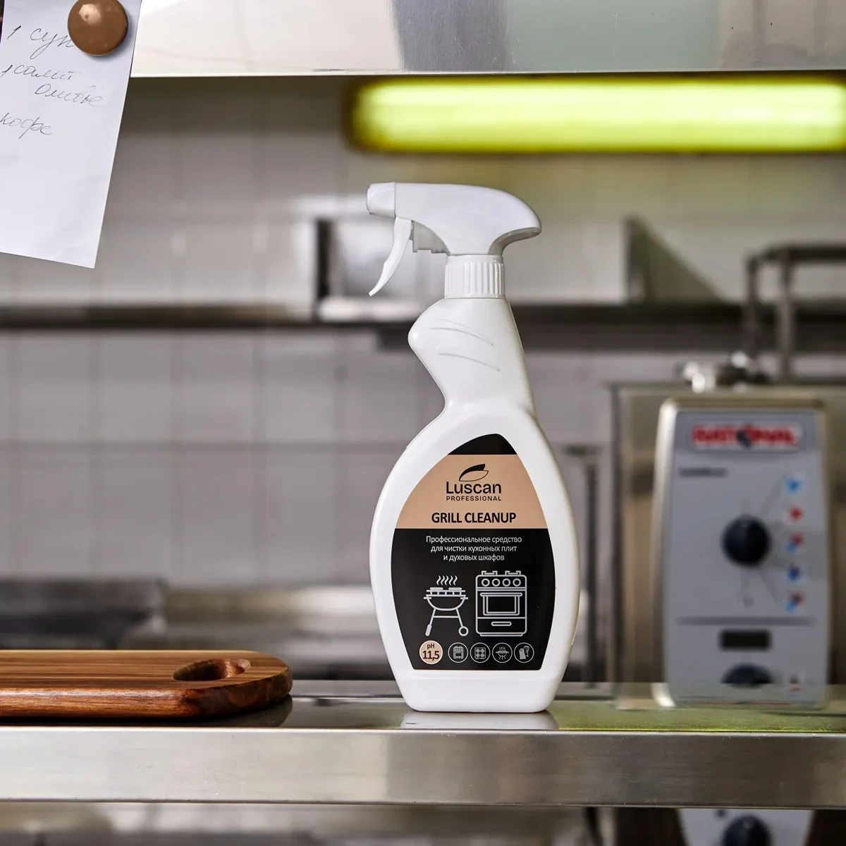 Готовый к использованию спрей для обезжиривания сильно загрязненных кухонных поверхностей, в том числе поверхностей, которые непосредственно контактируют с продуктами.