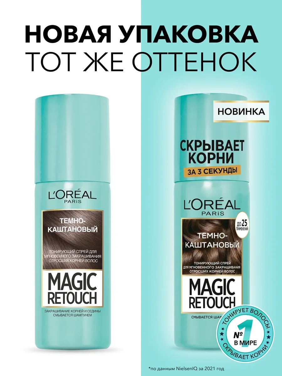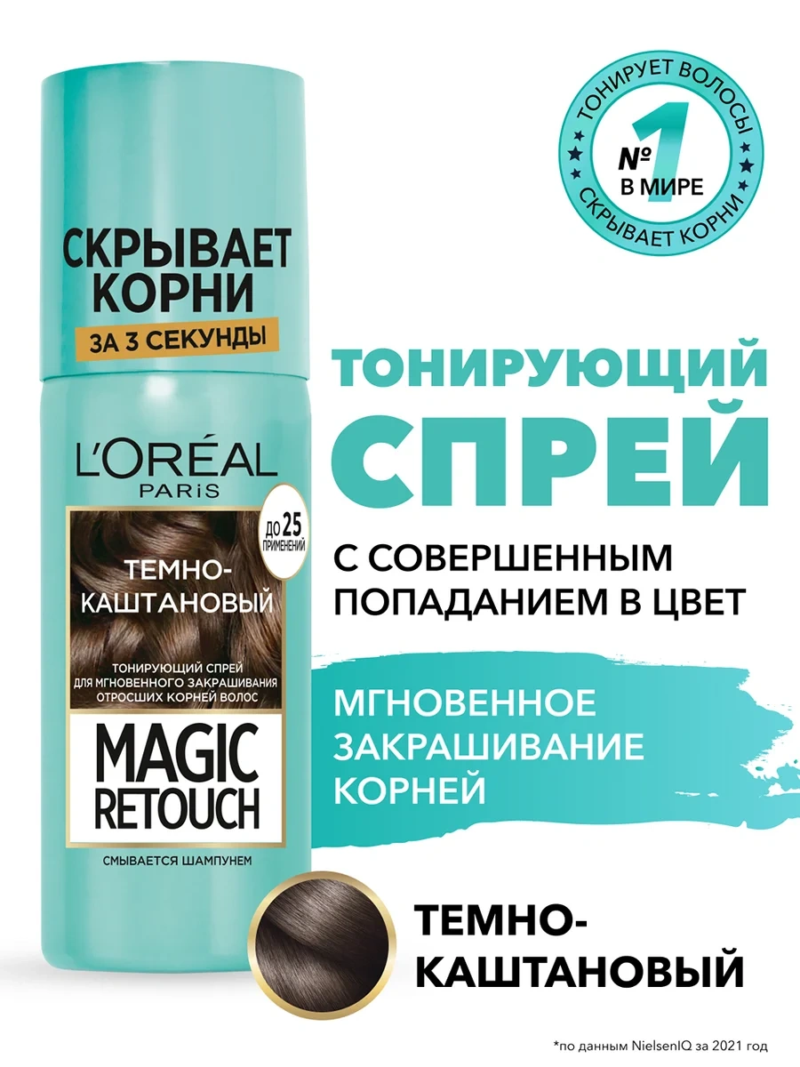 Спрей тонирующий L'Oreal Paris Magic Retouch Темно-каштановый для мгновенного закрашивания отросших