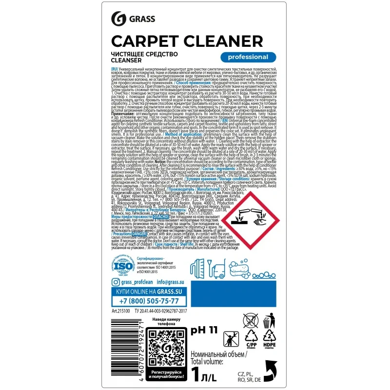 Чистящий концентрат для ковров Grass Carpet Cleaner 1л, 215100