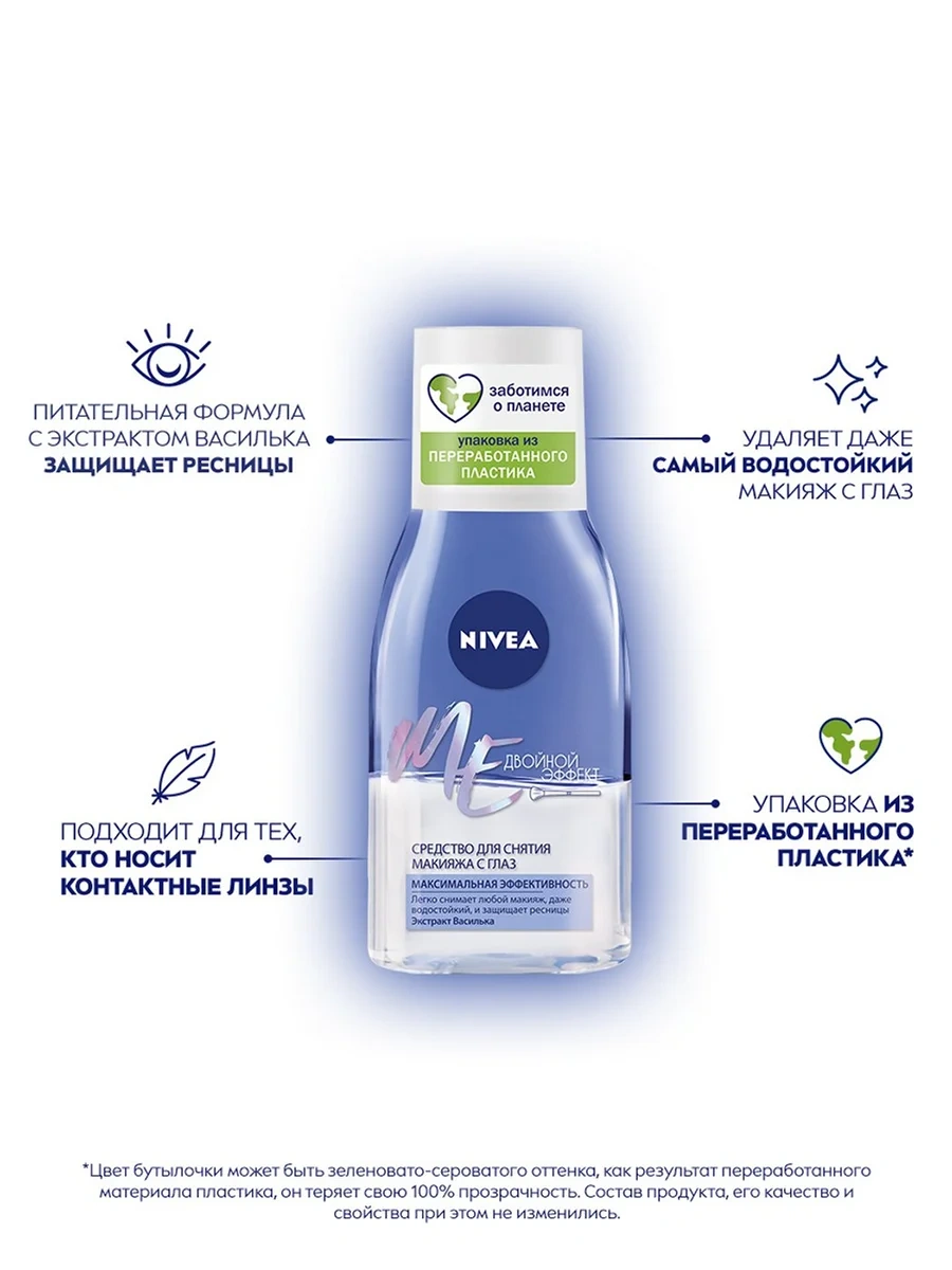 Средство для глаз Nivea Двойной эффект с экстрактом василька снятие стойкого макияжа, 125мл