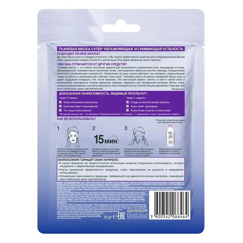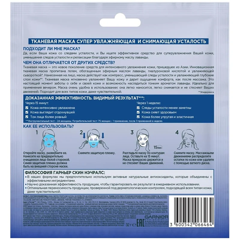 Маска для лица Garnier Увлажнение + антистресс тканевая, 32г