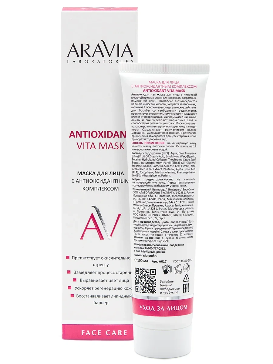 Маска для лица Aravia Laboratories с антиоксидантным комплексом, 100мл