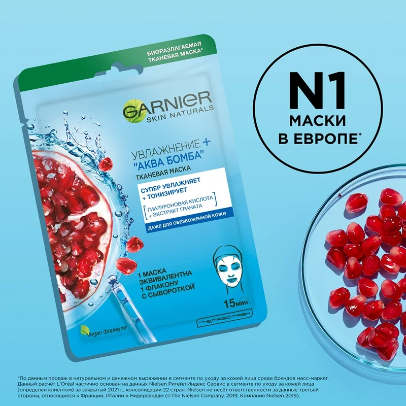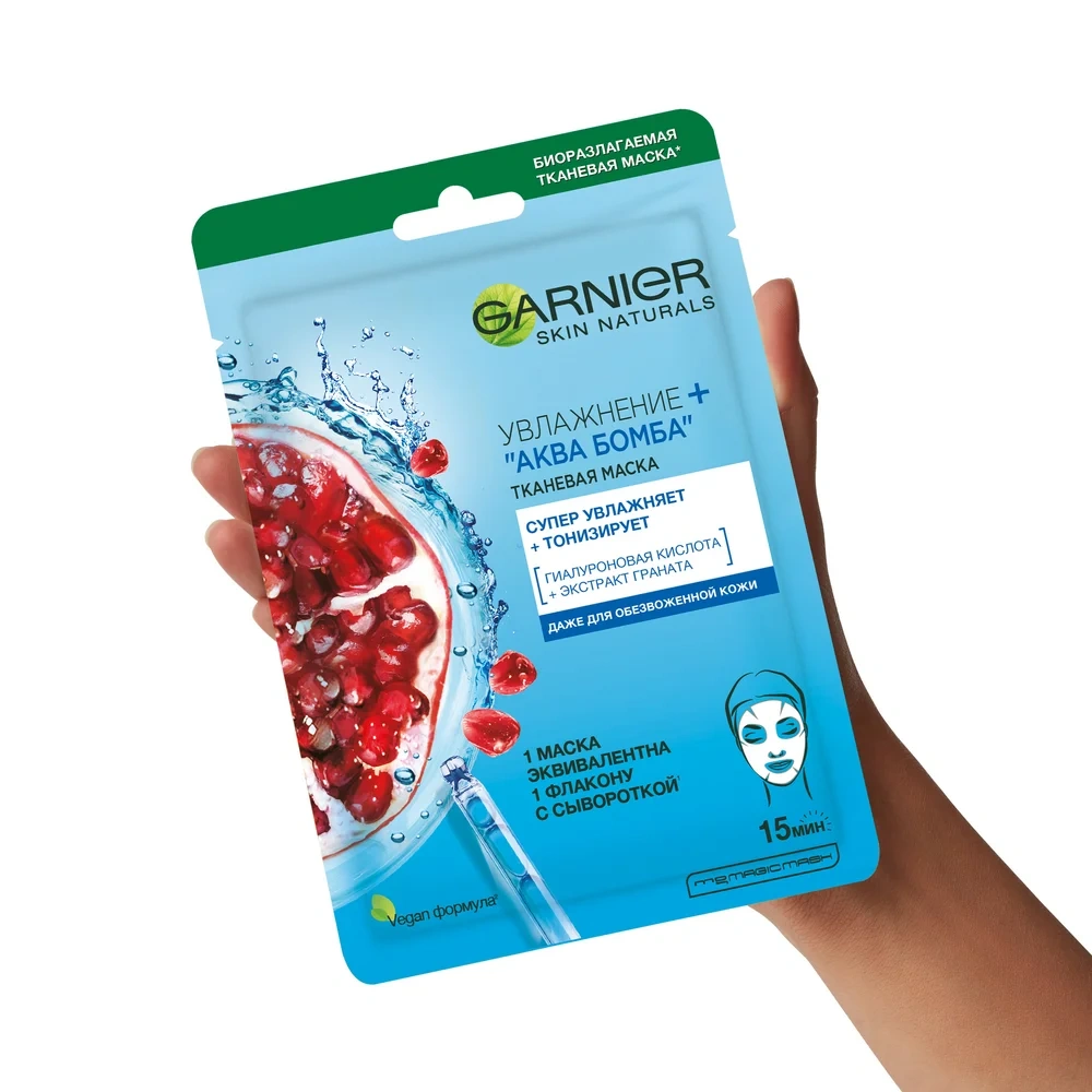 Маска для лица Garnier Увлажнение + аква бомба тканевая, 32г