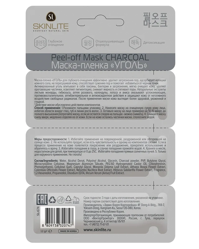 Маска-пленка Skinlite уголь, 4г x 3шт