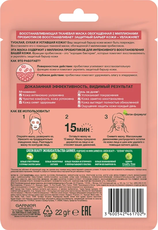 Маска для лица Garnier Увлажнение + свежесть тканевая, 32г