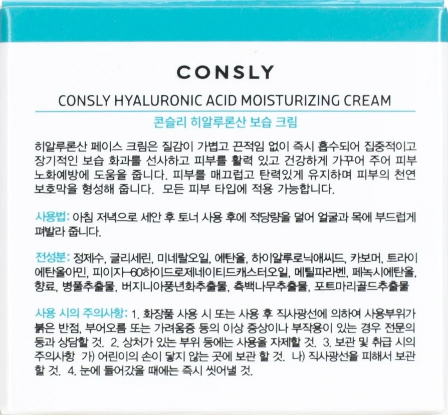 Крем для лица Consly Hyaluronic Acid увлажняющий с гиалуроновой кислотой и бета-глюканом, 70мл