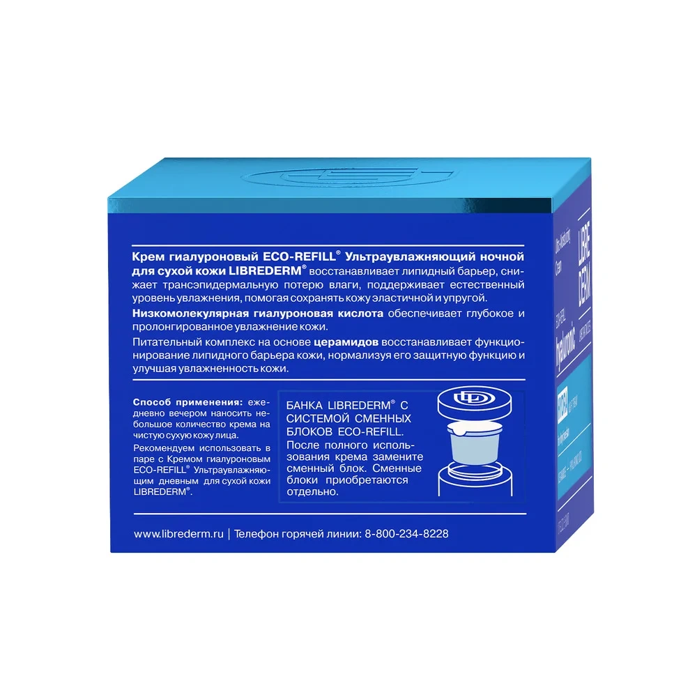 Крем Librederm Eco-Refill ультраувлажняющий ночной с гиалуроновой кислотой, 50мл