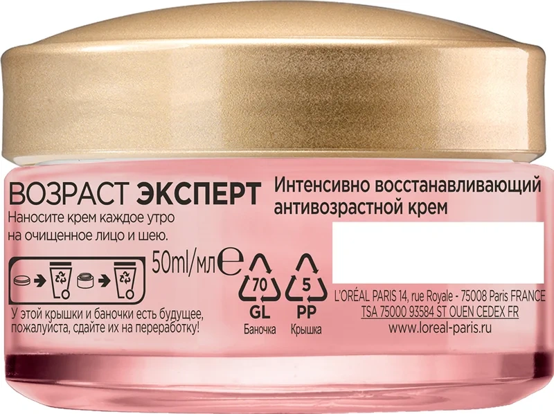 Крем для лица L'Oreal Paris Возраст эксперт 55+ уход против морщин восстанавливающий дневной, 50мл