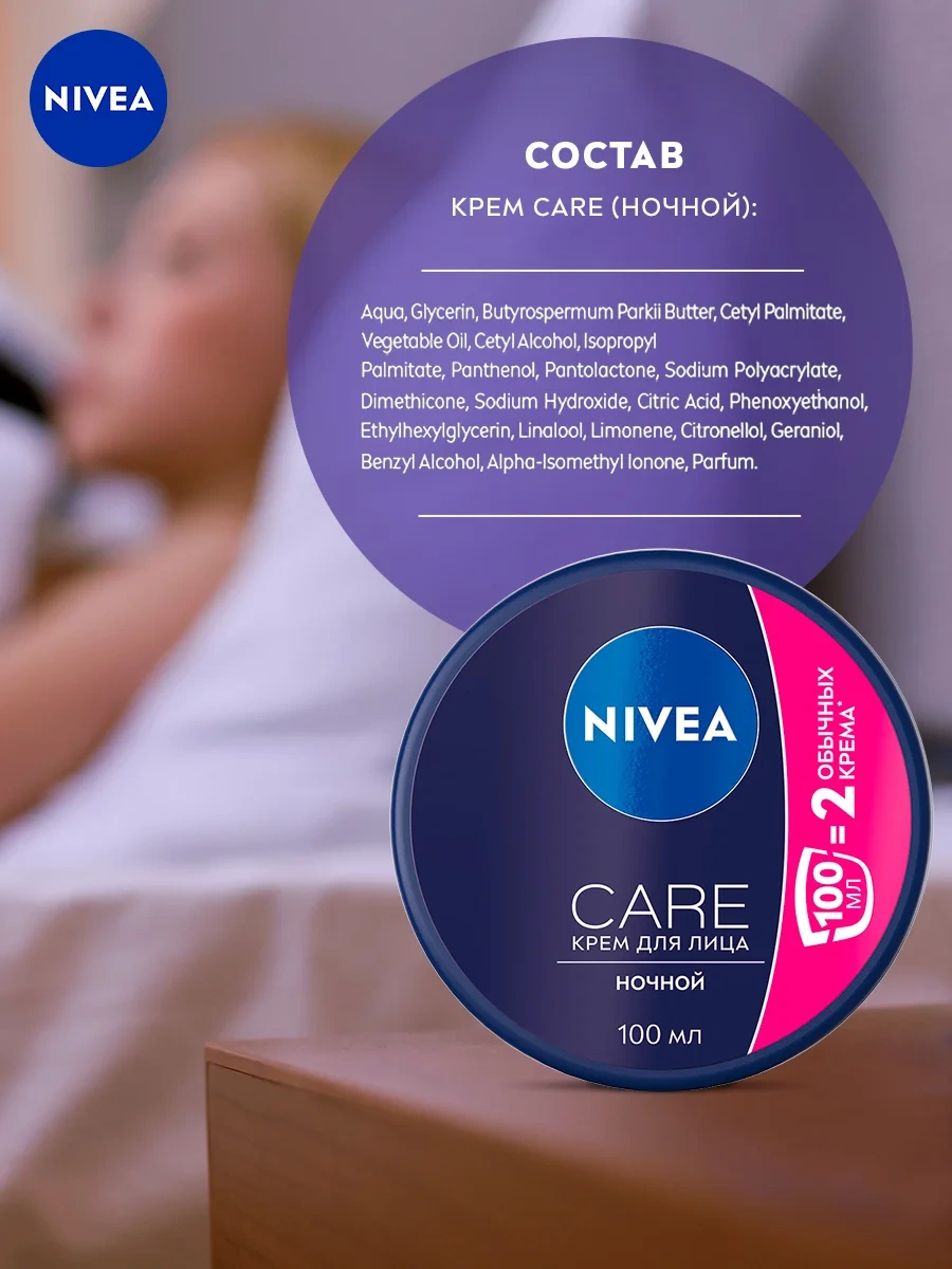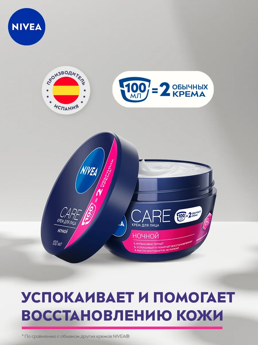 Крем для лица Nivea Care ночной питательный, восстанавливающий и успокаивающий, 100мл