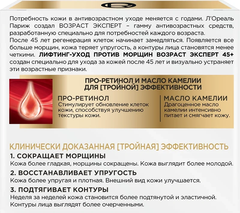 Крем для лица L'Oreal Paris Возраст эксперт 45+ лифтинг-уход против морщин дневной, 50мл
