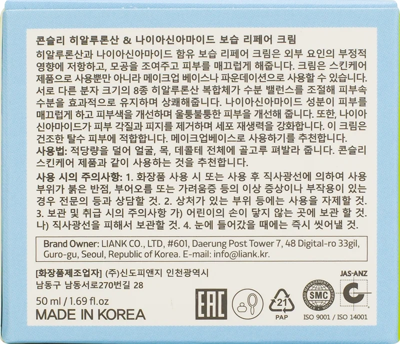 Крем для лица Consly Water Shot Enriched Hydrating с гиалуроном и ниацинамидом, 50мл
