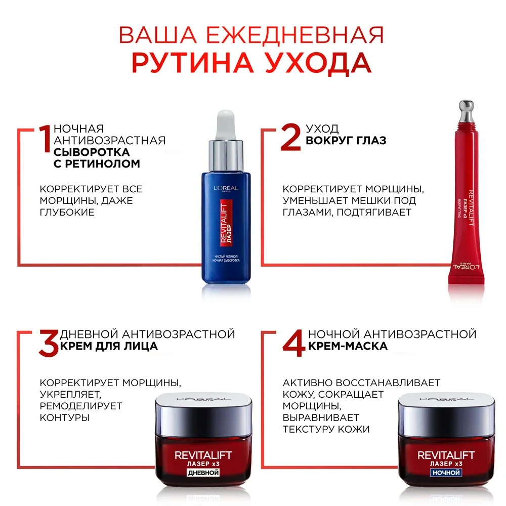 Крем для лица L'Oreal Paris Ревиталифт Лазер х3 дневной антивозрастной против морщин, 50мл