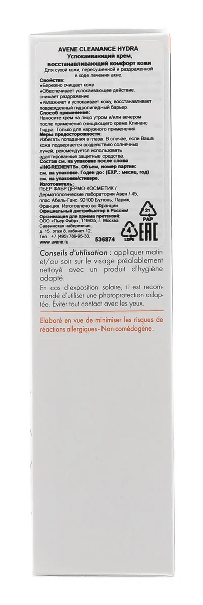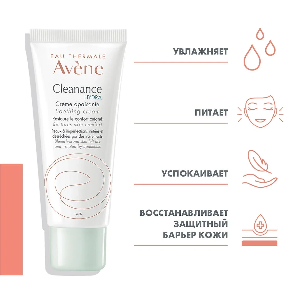 Крем для лица Avene Cleanance Hydra успокаивающий для пересушенной проблемной кожи, 40мл