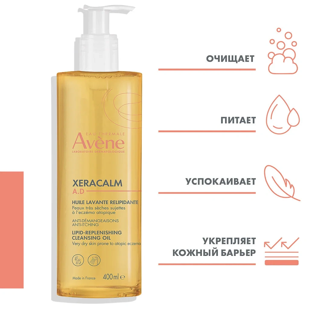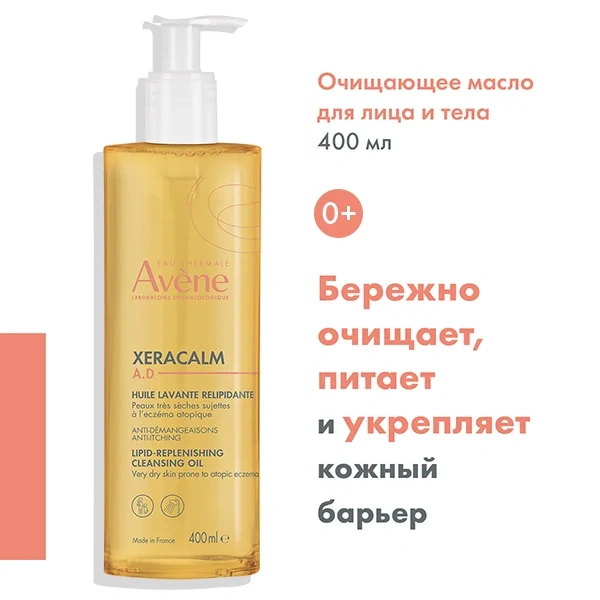 Масло для лица и тела Avene XeraCalm A.D липидовосполняющее очищающее, 400мл