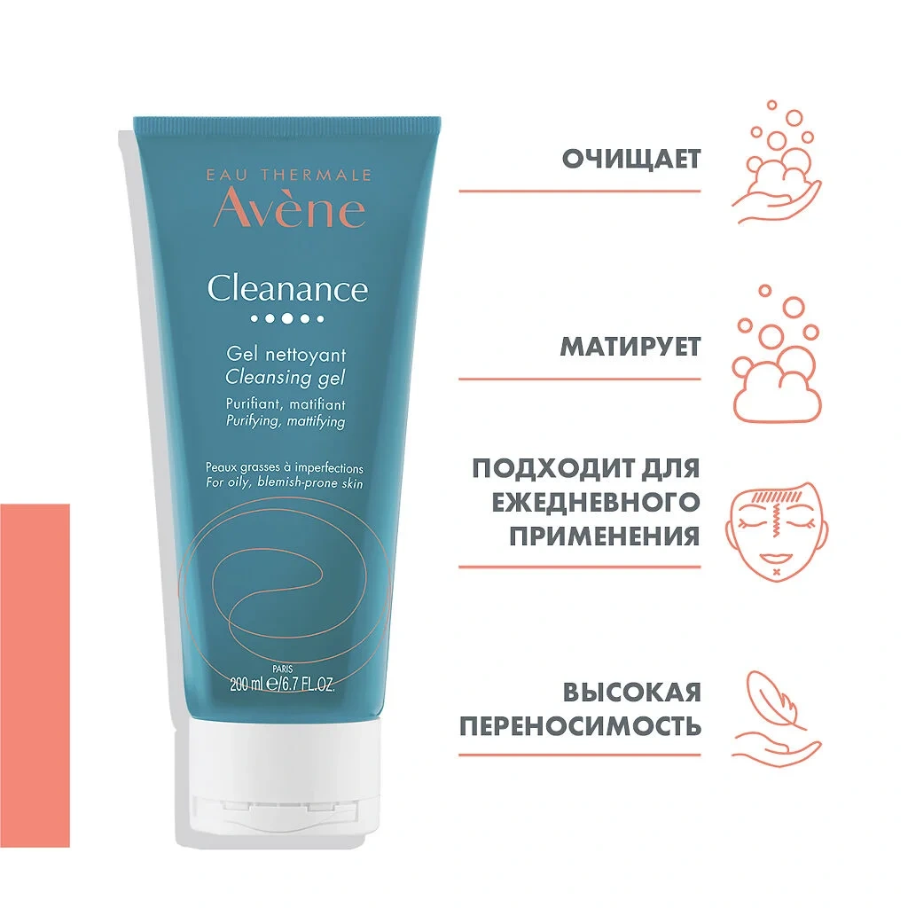 Гель очищающий Avene Cleanance матирующий для жирной проблемной кожи, 200мл