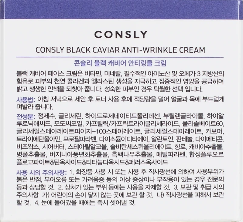 Крем для лица Consly Black Caviar Anti-Wrinkle против морщин с экстрактом черной икры, 70мл