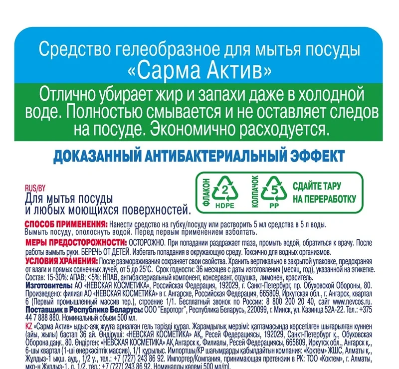 500МЛ ГЕЛЬ Д/МЫТЬЯ ПОСУДЫ SARM