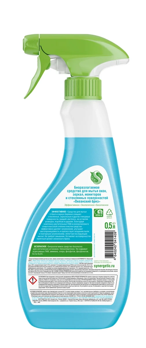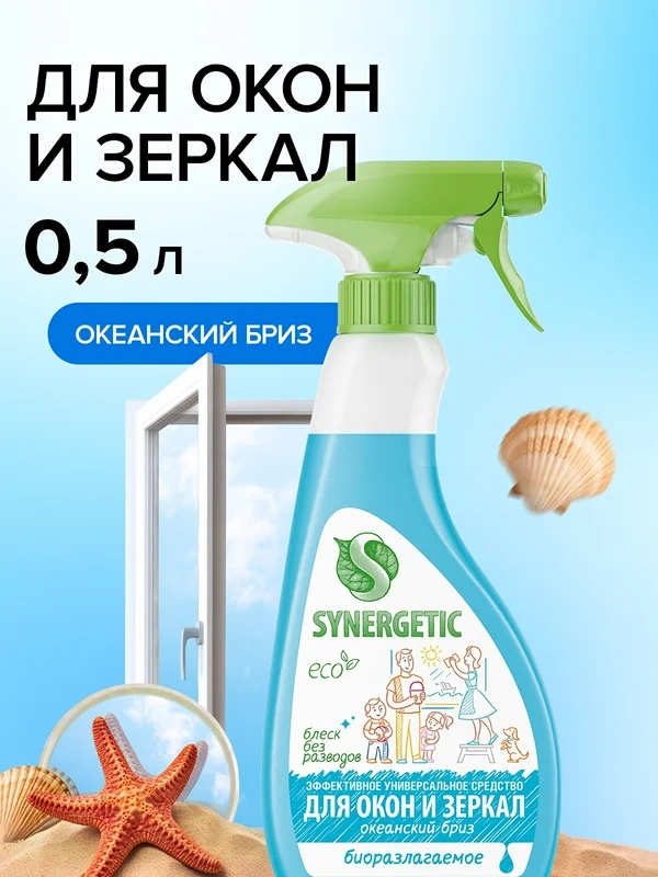Средство для окон и зеркал Synergetic Океанский бриз, 500мл