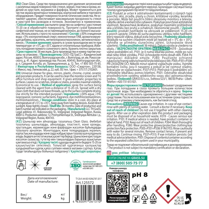 Чистящее средство для стекол Grass Clean Glass Professional 5кг, 125572