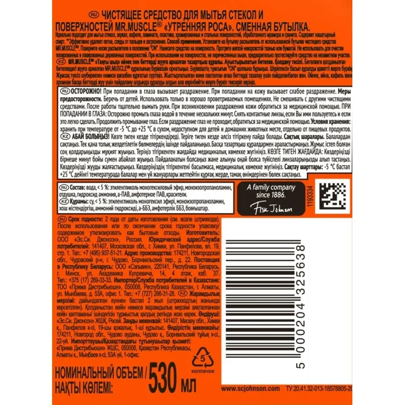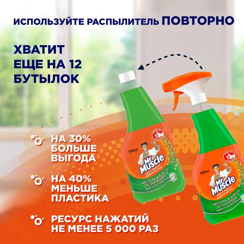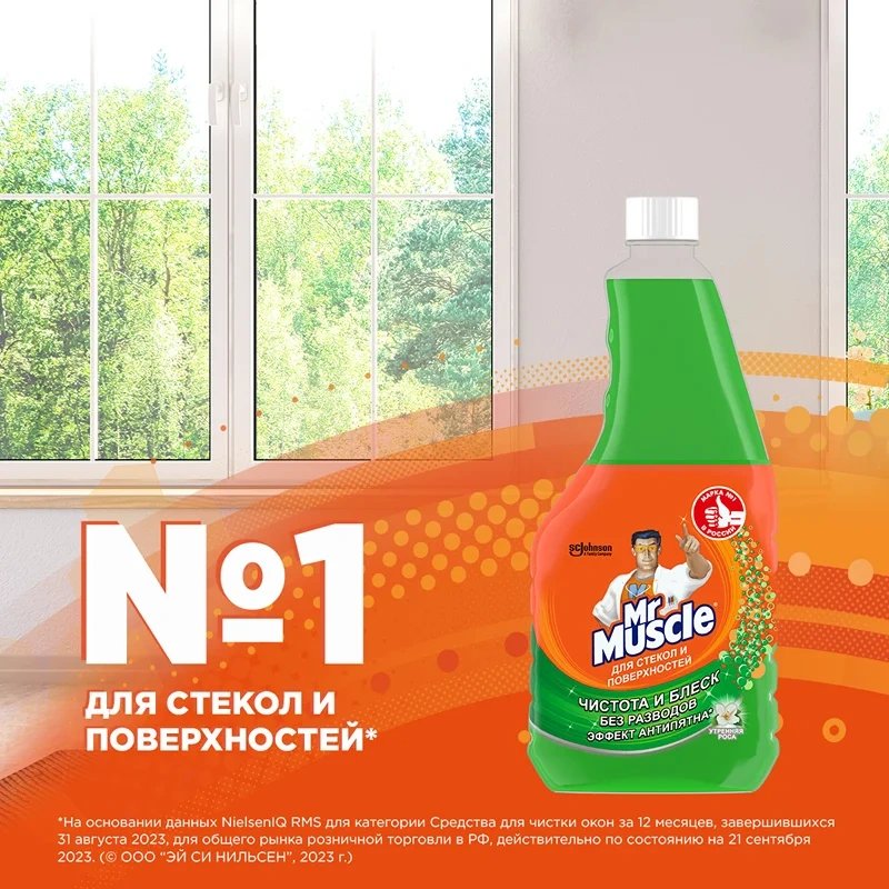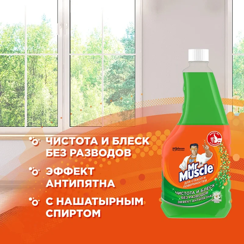 Чистящее средство для стекол Mr.Muscle 530мл, Утренняя роса, с нашатырным спиртом, спрей