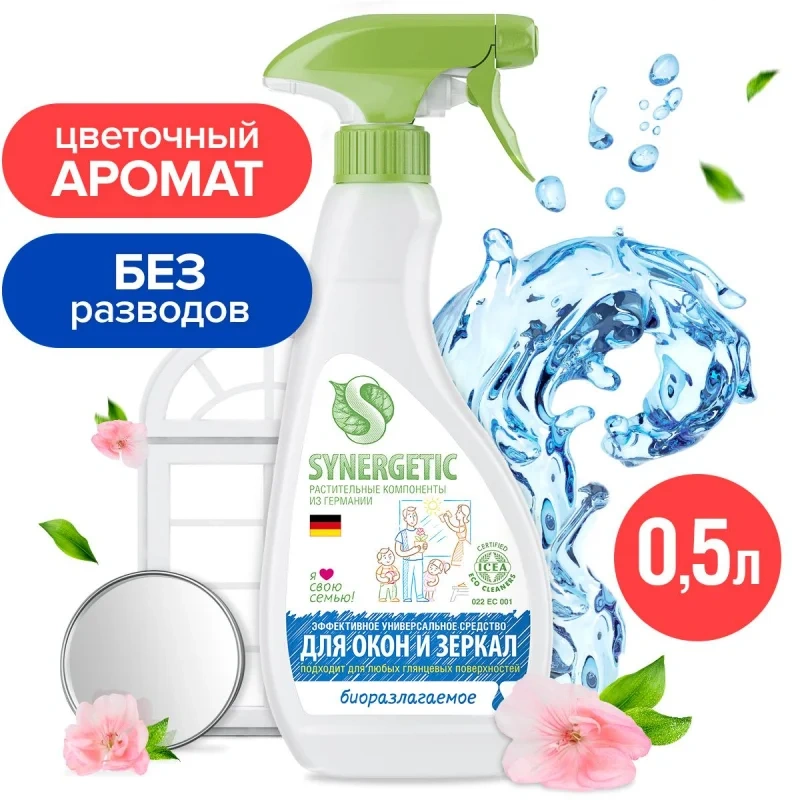 Моющее средство для стекол Synergetic 500мл, биоразлагаемое