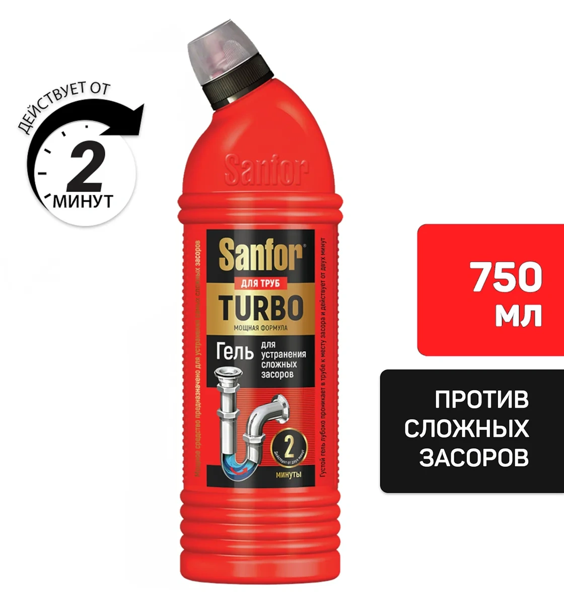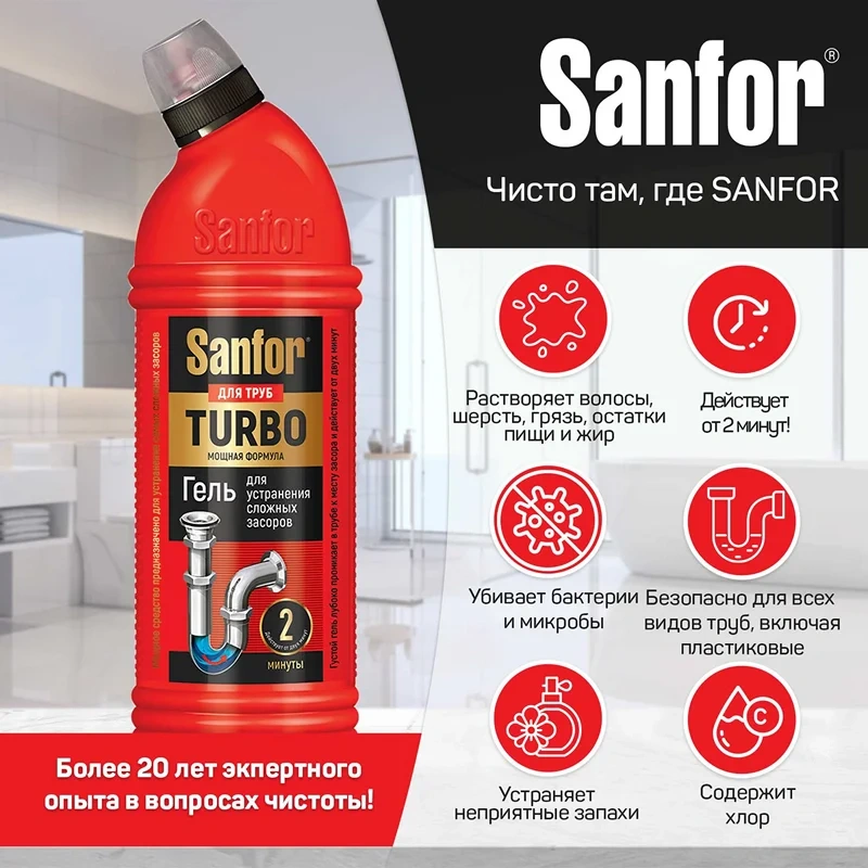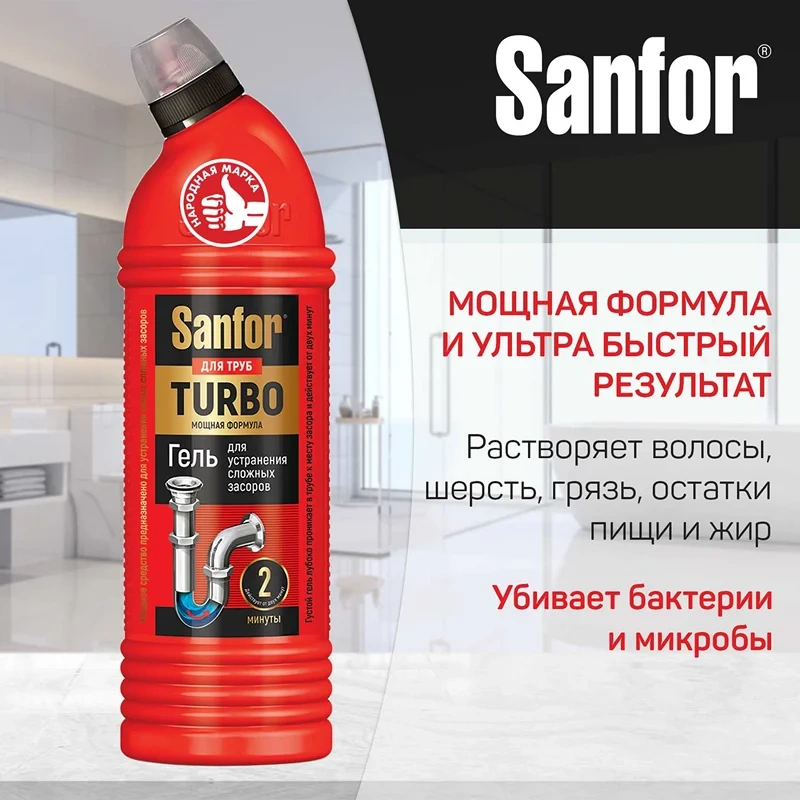 Средство для прочистки труб Sanfor Turbo 750г