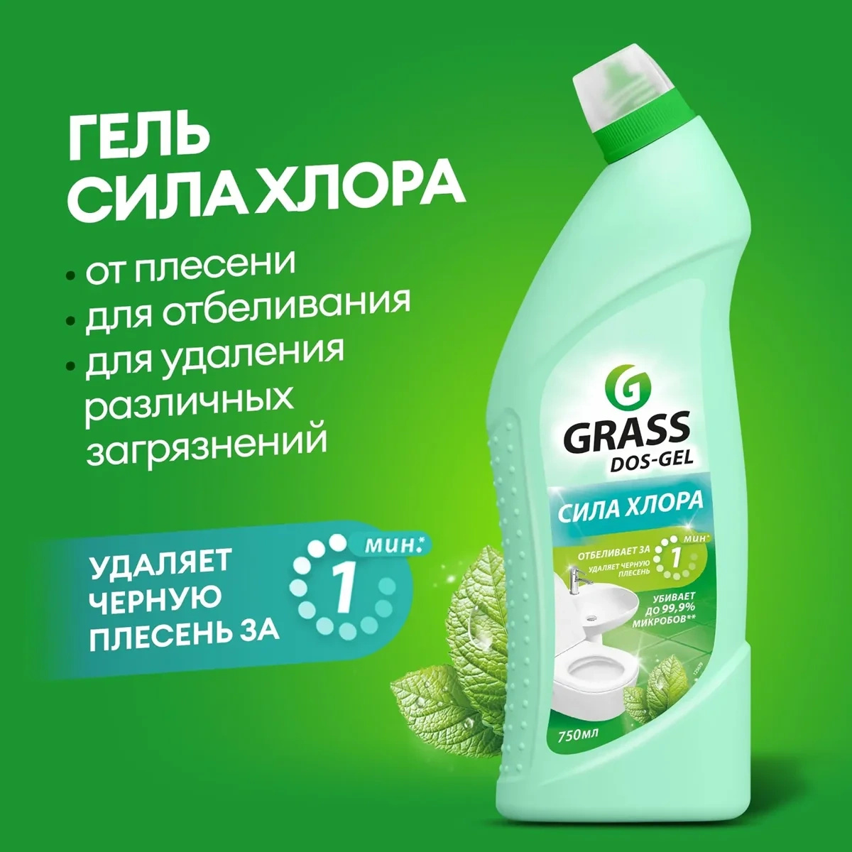 Моющее средство для сантехники Grass Dos Gel Мятная сила 750мл, гель