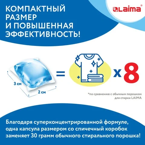 Капсулы для стирки концентрат GIGA PACK с кондиционером 100 шт., АЛЬПИЙСКАЯ СВЕЖЕСТЬ, LAIMA, 608878
