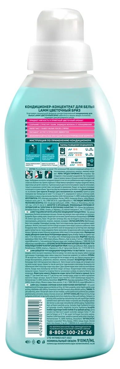 Кондиционер для белья Lamm Цветочный бриз концентрат, 910мл