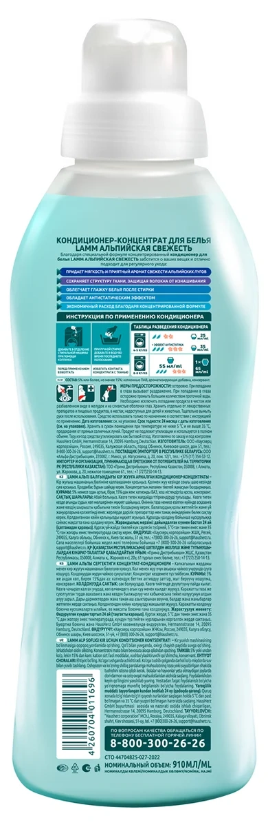Кондиционер для белья Lamm Альпийская свежесть концентрат, 910мл